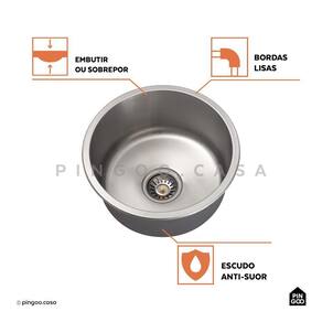 Fabricada em aço inox, a cuba de cozinha redonda Tamoios apresenta alta resistência à corrosão e à oxidação, garantindo sua durabilidade e longa vida útil.