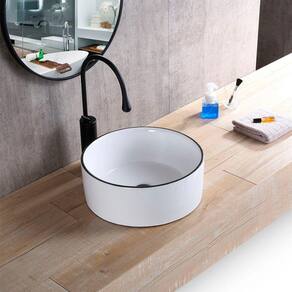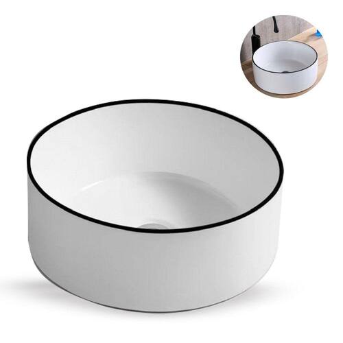 1 x Cuba Pia Banheiro Cerâmica Branca Sobrepor Redonda - Deend