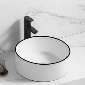 Com dimensões cuidadosamente projetadas de 39cm de largura, 39cm de profundidade e uma altura imponente de 15cm, esta cuba branca com borda preta redefine o conceito de sofisticação no seu banheiro.