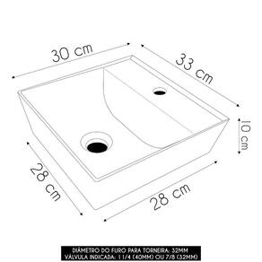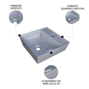 Fabricada em mármore sintético, um material composto por resina poliéster e carga mineral, com camada de Gel Coat e acabamento de pintura poliéster PU, ela é bastante semelhante à louça, porém mais econômica. A Cuba de Apoio combina resistência e durabilidade, além de já vir com furação para torneira, o que torna a instalação ainda mais prática. O acabamento em Hard Lacca PU garante brilho e proteção, proporcionando um visual sofisticado e fácil de manter.