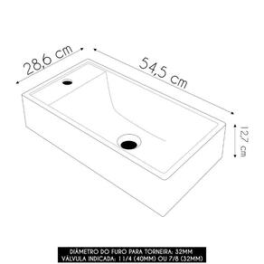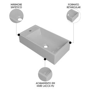Fabricada em mármore sintético, um material composto por resina poliéster e carga mineral, com camada de Gel Coat e acabamento de pintura poliéster PU, ela é bastante semelhante à louça, porém mais econômica. A Cuba de Apoio combina resistência e durabilidade, além de já vir com furação para torneira, o que torna a instalação ainda mais prática. O acabamento em Hard Lacca PU garante brilho e proteção, proporcionando um visual sofisticado e fácil de manter.