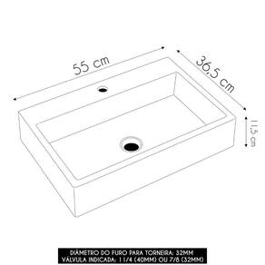 Fabricada em mármore sintético, um material composto por resina poliéster e carga mineral, com camada de Gel Coat e acabamento de pintura poliéster PU, ela é bastante semelhante à louça, porém mais econômica. A Cuba de Apoio combina resistência e durabilidade, além de já vir com furação para torneira, o que torna a instalação ainda mais prática. O acabamento em Hard Lacca PU garante brilho e proteção, proporcionando um visual sofisticado e fácil de manter.