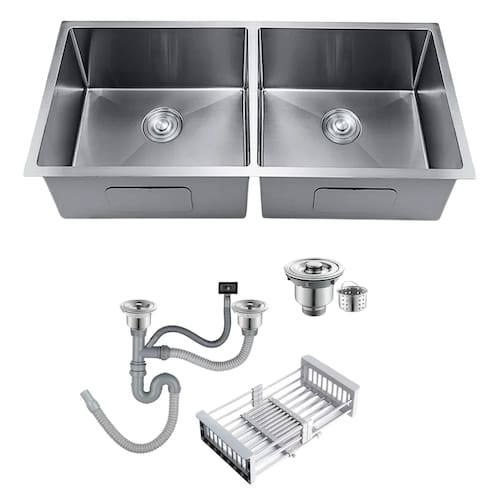 Cuba Pia Dupla Inox Quadrada Cozinha Gourmet 72x43cm com Acessórios