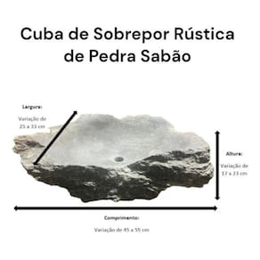 Ao efetuar a compra enviaremos fotos dos modelos disponíveis para escolha - as cubas são únicas e exclusivas não havendo nenhuma igual a outra. Há variações de tonalidade, tamanhos e formatos. Não acompanha válvula. Cuba bojo de pia de sobrepor pedra sabão rústica Elevando o estilo no seu lavabo com nossa cuba de pedra sabão Descubra o requinte e a beleza natural na sua casa de banho com a nossa cuba de lavabo em pedra sabão. Cada peça é uma obra de arte única, esculpida à mão para adicionar um toque de luxo e autenticidade ao seu espaço. Características exclusivas: Artesanalidade distinta: cada cuba é cuidadosamente esculpida por artesãos especializados, destacando as texturas e veios naturais da pedra sabão. Um toque artístico para o seu lavabo. Beleza duradoura: a pedra sabão é conhecida por sua durabilidade e resistência. Sua cuba de lavabo manterá sua beleza ao longo do tempo, resistindo a manchas e desgaste diário. Fácil manutenção: limpeza fácil e rápida a superfície lisa da pedra sabão permite uma manutenção simples, mantendo sua cuba sempre impecável. Toque natural: a pedra sabão é termicamente estável, proporcionando uma sensação suave e agradável ao toque. Desfrute de uma experiência única no seu lavabo. Por que escolher nossa cuba de lavabo em pedra sabão Exclusividade: cada cuba é uma peça única, garantindo que o seu lavabo seja verdadeiramente especial. Elegância duradoura: a pedra sabão é uma escolha intemporal, adicionando elegância e calor ao seu espaço. Sustentabilidade: a pedra sabão é uma opção eco-friendly, garantindo que você possa desfrutar de luxo com consciência ambiental. Transforme seu lavabo em um espaço de beleza natural e distinta. Deixe que a beleza única da nossa cuba de lavabo em pedra sabão eleve o seu espaço para um patamar de luxo autêntico. Descubra a fusão perfeita entre funcionalidade e design sofisticado. O que você achou Caso tenha ficado alguma dúvida pode nos contatar, teremos o maior prazer em atender. Explore as nossas outras opções de produtos, temos certeza que encontrará outros produtos de seu interesse : Visite nossas páginas. Equipe a panela de pedra Especificações: Medidas: - comprimento: pode variar de 37 a 50 cm - largura: pode variar de 25 a 35 cm - altura: pode variar de 13 a 20 cm - peso: pode variar de 15 a 20 kg Matéria prima - pedra sabão Para garantir a integridade do produto durante o transporte, limitamos o envio a 1 uma unidade por . Sujeito a cancelamento do pedido. Marca: Não Informado Ean: 7891795082400