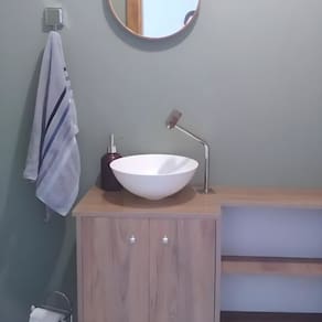 Instala-se sobre móveis, facilita limpeza e escoamento.
