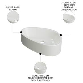 Fabricada em lapimat, um material inovador que combina resina poliéster, cargas minerais selecionadas e aditivos, a Cuba de Apoio se destaca pela resistência e durabilidade excepcionais. A dupla camada de pintura poliéster PU de alta performance, complementada por uma de verniz protetor resultam em um acabamento matte fosco com toque acetinado impecável.