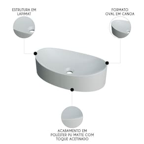 Fabricada em lapimat, um material inovador que combina resina poliéster, cargas minerais selecionadas e aditivos, a Cuba de Apoio se destaca pela resistência e durabilidade excepcionais. A dupla camada de pintura poliéster PU de alta performance, complementada por uma de verniz protetor resultam em um acabamento matte fosco com toque acetinado impecável.