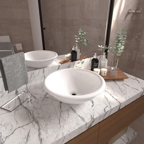 Para o modelo de sobrepor sugerimos a perfuração de 34 cm.
