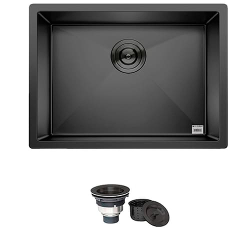 Cuba Preta Quadrada Inox 201 Cozinha Pia Embutir Sobrepor Gourmet 50x40 Premium com Válvula