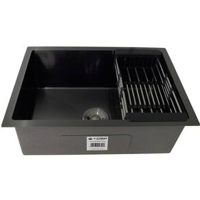 Cuba Preta Quadrada Inox 201 Cozinha Pia Embutir Sobrepor Gourmet 50x40 Premium com Lixeira de Embutir 5L, Tábua Multiuso e Acessórios