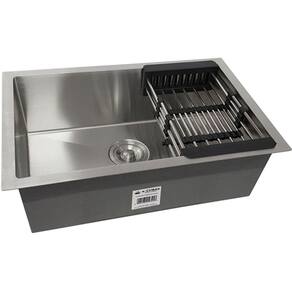 Cuba Quadrada Inox 304 Cozinha Pia Embutir Sobrepor Gourmet 7040 Premium com Lixeira de Embutir 5L e Acessórios