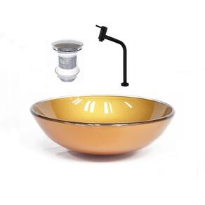 Cuba de vidro redonda 35cm dourado real + valvula + torneira preta As nossas cubas de vidro são ideais para projetos de decoração em banheiros com alto padrão e bom gosto, pois proporcionam um efeito moderno e único ao ambiente, são instaladas sobre a bancada e por isso realçam com destaque o acabamento do seu banheiro, sem contar a eficiência e praticidade que se leva para a sua casa. O vidro é pintados com tinta de alta performance, o que lhe garante a permanência da cor . Na compra deste super combo 3 em 1, você compra de uma só vez, a cuba redonda, válvula click e a torneira de metal preta, de forma mais fácil, mais rápido e mais barato. Dados técnicos da cuba: Formato: redonda; Material: vidro; Instalação: apoio ou sobrepor; Dimensões: 35x35x13cm comprimento x profundidade x altura ; Espessura: 12mm. Dados técnicos da válvula: Formato: redonda; Material: polipropileno; Instalação: cubas, tanques e lavatórios; Diâmetro: 1.1/4 polegadas . Dados técnicos da torneira preta: Material: liga metálica preta; Conexão de entrada: 1/2 polegada -1/4 volta; Altura total da torneira: 37 cm; Altura da queda dágua: 27 cm. de todos os itens: 12 meses conforme política de troca e devoluções . Montagem: montagem e instalação não inclusa na venda ou preço do produto, elas são de inteira responsabilidade do cliente. Atenção: preço referente a cuba, válvula click e torneira de metal preta. Imagens ilustrativas. Ean: 7909752076420