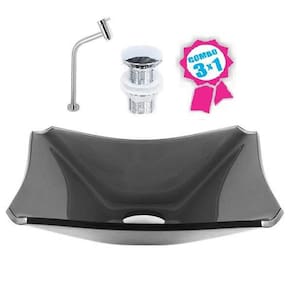 Cuba De Vidro Retangular Chanfrada 37Cm Grafite + Válvula Click + Torneira As nossas cubas de vidro são ideais para projetos de decoração em banheiros com alto padrão e bom gosto, pois proporcionam um efeito moderno e único ao ambiente,são instaladas sobre a bancada e por isso realçam com destaque o acabamento do seu banheiro, sem contar a eficiência e praticidade que se leva para a sua casa. Nossas cubas de vidro, além de serem lindas e com preço que cabe no seu bolso, levam algumas vantagens em relação aos modelos de embutir, pois são cubas mais fáceis de instalar e também de trocar, sendo assim, são mais praticas caso precise realizar manutenções em seu banheiro. As cubas de vidro de sobrepor ou apoio, são muito práticas e simples de limpar, além do que o produto apresenta também a resistência necessária para durar muitos anos. Super combo 3 em 1, tudo que o seu banheiro precisa, são 3 produtos em uma única compra: 01 cuba de vidro retangular chanfrada 37cm; 01 válvula click redonda; 01 torneira de metal cromada. Mais fácil, mais rápido e mais barato. Dados técnicos da cuba Formato: retangular chanfrada Material: vidro Instalação: apoio ou sobrepor Dimensões: 37x32x10 comprimento x profundidade x altura Espessura: 10mm Dados técnicos da torneira cromada: Material: liga metálica cromada Conexão de entrada: 1/2 polegada -1/4 volta Altura total da torneira: 37 cm. Altura da queda dágua: 27 cm. Dados técnicos da válvula: Formato: redonda Material: metal Instalação: cubas, tanques e lavatórios. Diâmetro: 1.1/4 polegadas : 12 meses conforme política de troca e devoluções . Montagem: montagem e instalação não inclusa na venda ou preço do produto, elas são de inteira responsabilidade do cliente. Imagens ilustrativas. Marca: Não Informado Ean: 7908240158013
