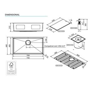 Cuba Simples Bistrô 70x40x20 Escovado com Acessórios e Lixeira FSC100% Docol - Espaço e Utilidade de sobra para sua cozinha!