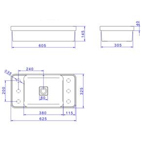 - Altura: 13,5 cm; - Largura: 62 cm; - Profundidade: 40 cm; - Diâmetro da Válvula: 8 cm.
