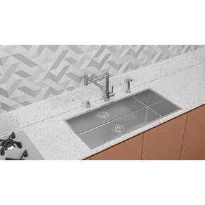 Uma cozinha sofisticada com tecnologia de ponta torna nossa casa mais confortável e aconchegante. A Cuba Tramontina Quadrum 90 em Aço Inox com Acabamento Scotch Brite da Linha Tramontina Design Collection traz a exclusividade e inovação da Tramontina em uma peça de requinte. Produzida em aço inox com elegante acabamento Scotch Brite, é uma cuba com grande profundidade que se adapta aos mais variados projetos. Com design diferenciado, ela transmite personalidade em qualquer decoração usada na cozinha. Possui dimensões de 90x40 cm e garante resistência e higiene. Possui duas maneiras de instalação: por cima do granito (semi flush) e no novo sistema flush, onde a cuba fica perfeitamente nivelada a bancada. Acompanha válvula com diâmetro de 4 1/2 polegadas com escape e manta adesiva antirruído.