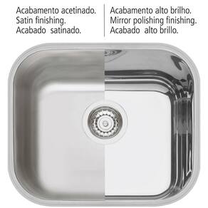 CARACTERÍSTICAS - Cuba em aço Inox AISI 304; - Espessura: 0,6 mm; - Fabricado no sistema monobloco (sem solda); - Acabamento Scotch Brite na borda de sobrepor; - Acompanha válvula de 4 1/2"; - Sem escape; - Acompanha sifão simples.