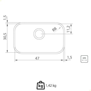 - Profundidade da cuba 170 mm;