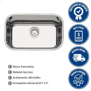 Cuba Tramontina Lavínia 47 Bl Prime Em Aço Inox Alto Brilho 47x30 Cm Com Válvula 94022207