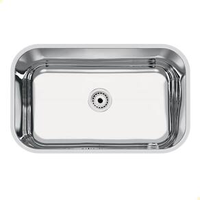 A cuba é fabricada em Aço Inox AISI 430, um material resistente e durável, ideal para o uso em cozinhas residenciais. Sua espessura é de 0,6 mm, o que garante boa robustez e acabamento polido de qualidade.