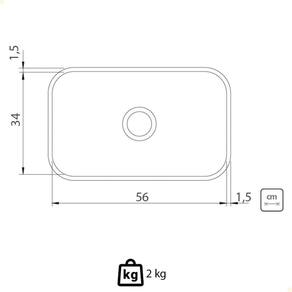 A Cuba Tramontina Lavínia 56 BL possui 56 cm de comprimento, 34 cm de largura e uma altura total de 14,5 cm, sendo que a profundidade útil da cuba é de 14 cm, o que a torna uma excelente opção para quem possui bom espaço disponível na bancada da cozinha. Marca: Tramontina | Material: Aço inox | EmbalagemLargura-cm: 61 | ProdutoComprimento-cm: 56 | Código certificação: 0 | Cubagem: 0.041480 | ProdutoLargura-cm: 34 | Com dosador de detergente: Não | ISBN: 0 | ProdutoAltura-cm: 14.5 | Peso Líquido: 1.6000 | Itens inclusos: Válvula | Dias Entrega Fornecedor: 1 | Comprimento Produto: 56 | Largura: 34 cm | Acabamento: Polido | Modelo alfanumérico: 94085507 | Válvula para rápido esvaziamento: Sim | Sabor: 0 | Largura Produto: 34 | Altura Produto: 14.5 | EmbalagemAltura-cm: 17 | EmbalagemComprimento-cm: 40 | Linha: Standard | Inclui torneira: Não | Comprimento: 56 cm | Tipos de instalação: Embutir | Certificado de Homologação da Anatel: 0 | Acessórios incluídos: Válvula | Modelo: Retangular | Certificações: 0 | Cor: Inox | Capacidade em volume: 24.5 L | Voltagem: 0 | Tamanho: 0 | Tipo de pia: Simples | Profundidade: 14.5 cm | Espessura: 0.5 mm