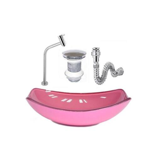 Cuba de vidro oval chanfrada 46cm rosa + valvula + torneira + sifao As nossas cubas são indicados para projetos arrojados e de muito bom gosto, além de valorizar o seu ambiente com sofisticação em uma decoração de alto padrão,ela consegue usufruir das vantagens que o vidro proporciona e gerar uma durabilidade indiscutível, sem contar que com as várias opções de cores, você sempre poderá encontrar uma cor perfeita para o seu banheiro. O vidro da cuba é pintados com tinta de alta performance, o que lhe garante a permanência da cor . Super combo 4 em 1, tudo que o seu banheiro precisa, são 4 produtos em uma única compra: 01 cuba de vidro oval chanfrada 46cm; 01 válvula click redonda; 01 torneira de metal cromada; 01 sifão. Mais fácil, mais rápido e mais barato. Dados técnicos da cuba: Formato: oval chanfrada; Material: vidro; Instalação: apoio ou sobrepor; Dimensões: 46x31x13cm comprimento x profundidade x altura ; Espessura do vidro: 10mm. Dados técnicos da válvula: Formato: redonda; Material: polipropileno; Instalação: cubas, tanques e lavatórios; Diâmetro: 1.1/4 polegadas. Dados técnicos da torneira cromada: Material: liga metálica cromada; Conexão de entrada: 1/2 polegada -1/4 volta; Altura total da torneira: 37 cm; Altura da queda dágua: 27 cm. Dados técnicos do sifão: Suporta água quente e fria; Cor: cromado Entradas: 7/8, 1 1/4 e 1 1/2. de todos os itens: 12 meses conforme política de troca e devoluções . Montagem: montagem e instalação não inclusa na venda ou preço do produto, elas são de inteira responsabilidade do cliente. Imagens ilustrativas. Marca: Não Informado
