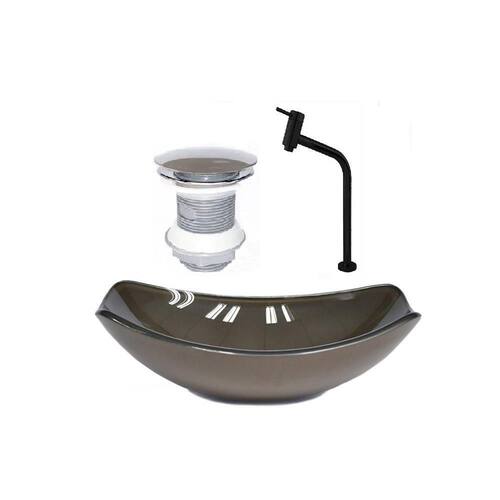 Cuba Vidro Oval 46Cm Marrom + Valvula + Torneira Preta As nossas cubas de vidro são ideais para projetos de decoração em banheiros com alto padrão e bom gosto, pois proporcionam um efeito moderno e único ao ambiente, são instaladas sobre a bancada e por isso realçam com destaque o acabamento do seu banheiro, sem contar a eficiência e praticidade que se leva para a sua casa. O vidro é pintados com tinta de alta performance, o que lhe garante a permanência da cor . Na compra deste super combo 3 em 1, você compra de uma só vez, a cuba oval chanfrada, válvula click e a torneira de metal preta, de forma mais fácil, mais rápido e mais barato. Dados técnicos da cuba: Formato: oval chanfrada; Material: vidro; Instalação: apoio ou sobrepor; Dimensões: 46x31x13cm comprimento x profundidade x altura ; Espessura: 10mm. Dados técnicos da válvula: Formato: redonda; Material: polipropileno; Instalação: cubas, tanques e lavatórios; Diâmetro: 1.1/4 polegadas. Dados técnicos da torneira de metal: Material: liga metálica preta; Conexão de entrada: 1/2 polegada -1/4 volta; Altura total da torneira de metal preta: 37 cm; Altura da queda dágua: 27 cm. : 12 meses conforme política de troca e devoluções . Atenção: preço referente a cuba, válvula click e torneira de metal preta. Montagem: montagem e instalação não inclusa na venda ou preço do produto, elas são de inteira responsabilidade do cliente. Imagens ilustrativas.