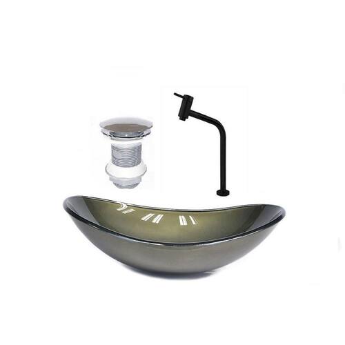 Cuba Vidro Oval 47Cm Ouro Velho + Valvula + Torneira Preta