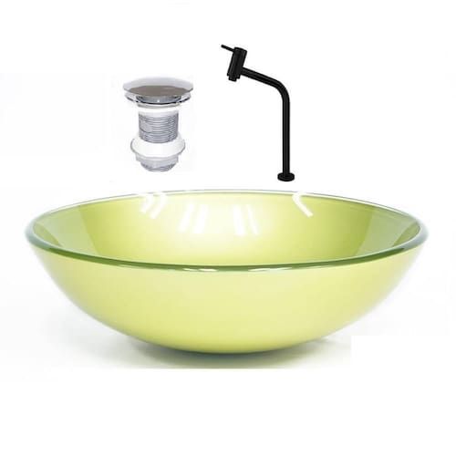 Cuba de vidro redonda 31cm verde oliva + valvula + torneira preta as nossas cubas de vidro são ideais para projetos de decoração em banheiros com alto padrão e bom gosto, pois proporcionam um efeito moderno e único ao ambiente, são instaladas sobre a bancada e por isso realçam com destaque o acabamento do seu banheiro, sem contar a eficiência e praticidade que se leva para a sua casa. O vidro é pintados com tinta de alta performance, o que lhe garante a permanência da cor. Na compra deste super combo 3 em 1, você compra de uma só vez, a cuba redonda, válvula click e a torneira de metal preta, de forma mais fácil, mais rápido e mais barato. Dados técnicos da cuba: formato: redonda; material: vidro; instalação: apoio ou sobrepor; dimensões: 31x31x13cm comprimento x profundidade x altura ; espessura: 12mm. Dados técnicos da válvula: formato: redonda; material: polipropileno; instalação: cubas, tanques e lavatórios; diâmetro: 1. 1/4 polegadas. Dados técnicos da torneira preta: material: liga metálica preta; conexão de entrada: 1/2 polegada -1/4 volta; altura total da torneira: 37 cm; altura da queda dágua: 27 cm. Garantia de todos os itens: 12 meses conforme política de troca e devoluções . Atenção: preço referente a cuba, válvula click e torneira de metal preta. Montagem: montagem e instalação não inclusa na venda ou preço do produto, elas são de inteira responsabilidade do cliente. Imagens ilustrativas.