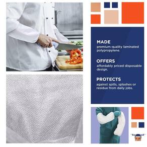 Cubiertas desechables para mangas de brazo, 50 piezas, 21 cm de longitud, impermeables y resistentes a aceites. Protege la ropa y la piel con estas mangas protectoras de polipropileno de alta calidad con película microporosa y superficie laminada resistente a desgarros. Ideal para trabajos que requieren protección contra agua, aceites, químicos ligeros y suciedad. Incluye elásticos integrados para un ajuste seguro y cómodo sin dejar marcas en la piel. Uso versátil para limpieza, industria alimentaria, belleza, tatuajes, pintura, reparaciones y jardinería.