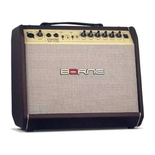 O Borne Infinit A40 Studio é um amplificador compacto e versátil, ideal para violão e voz. Com 40W RMS de potência e alto-falante de 8", oferece timbre limpo, encorpado e com excelente definição. Possui entradas independentes para microfone e instrumento, EQ de 3 bandas, reverb integrado e interface Borne Sync Pro para conectar apps de efeitos. Seu acabamento marrom traz um visual elegante e retrô, perfeito para apresentações acústicas, estúdios e pequenos palcos.