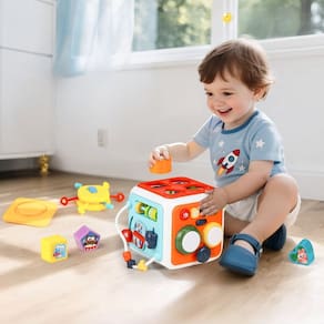 Com um design colorido, moderno e totalmente seguro, o Cubo de Atividades para Bebês traz diferentes lados com desafios lúdicos e educativos — incluindo labirinto de contas, relógio, engrenagens giratórias, blocos de encaixe, elásticos coloridos, tambor musical e centro de música com luzes e sons. Cada lado desperta a imaginação e ajuda a desenvolver a coordenação motora fina, o raciocínio lógico, a percepção tátil e visual, além de incentivar a exploração independente e o aprendizado através da brincadeira.