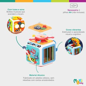 Cubo de Atividade Brinquedo Didático Educativo 7 formas de Uso com Som e Luzes Tiko Maxi Baby
