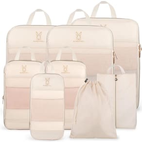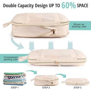 - ?Cubos de embalagem de compressão expansíveis? Diga adeus à bagunça da bagagem e torne sua experiência de viagem uma brisa com os organizadores de compressão expansíveis BUNNYCHILL. Os cubos de embalagem de 6 peças contêm 5 cubos de viagem + 1 saco de lavanderia, mantém suas roupas em cubos de compressão separados e deixa sua bagagem limpa e limpa durante a viagem
