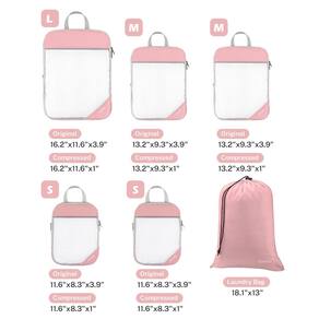 Gonex Organizadores de malha de compressão 1L + 2M + 2S + saco de lavanderia rosa - O conjunto inclui: 1 x grande (41 x 29,5 x 9,9 cm), 2 x médio (33,5 x 23,5 x 9,9 cm), 2 * pequeno (29,5 x 21 x 9,9 cm) e 1 * saco de roupa (46 x 33 cm) - Material macio: O poliéster ultra macio e leve com alta densidade e extensibilidade e zíper suave tornam este conjunto de cubos de compressão extremamente durável quando é preenchido com mais itens essenciais. - Revolucionou sua embalagem: nossos organizadores facilitam a embalagem e reduzem drasticamente o espaço necessário para viagens. Chega de embalar! - Economia de espaço: zíperes duplos do cubo de embalagem funcionam perfeitamente na compressão de roupas para ajudar a economizar espaço em sua bagagem de mão ou mochila de viagem. Ótimo equipamento de viagem para minimizar o tamanho da sua bagagem de mão. Alça rápida para fácil acesso a retirar cubos embalados da mala ou mochila. - Adequado para todas as ocasiões: ideal para férias em família, viagens de negócios, acampamento ao ar livre e armazenamento diário.