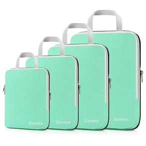 Gonex Cubos de embalagem extensíveis com 4 conjuntos. Aviso amigável Ao usar zíper expansível, a roupa interna pode ser presa com zíper. Se sim, pare de ir, mas puxe o zíper lentamente e empurre a roupa para fora ao mesmo tempo. A espuma de sabão será útil na lubrificação. Descrição do produto Cor: preto, cinza escuro, azul, verde, azul arroxeado, roxo, damasco. Material: nylon Dimensões da embalagem: 40 x 28 x 4 cm/15,7 x 11 x 1,6 pol. Peso de envio: 340 g/0,75 lbEspecificações: Tamanho: GG 44 x 33 x 9 cm/17,3 x 13 x 3,54 polegadas C 3,54 polegadas 7 x 27 x 9 cm/14,5 x 10,6 x 3,54 polegadas M 30 x 22,5 x 9 cm/11,8 x 8,9 x 3,54 polegadas P 25 x 19 x 8 cm/9,8 x 7,5 x 3,54 polegadas O pacote inclui: 1x Gonex organizadores extensíveis - 4 conjuntos - O conjunto inclui: 1x GG: 44 x 33 x 9 cm/17,3 x 13 x 3,54 polegadas, 1x C: 37 x 27 x 9 cm/14,5 x 10,6 x 3,54 polegadas, 1x M: 30 x 22,5 x 9 cm/11,8 x 8,9 x 3,54 polegadas, 1x P: 25 x 19 x 19 x 8 cm. 20 x 19 x 9 cm. - Material macio: o nylon leve e ultramacio com alta densidade e extensibilidade, juntamente com o zíper suave, torna este conjunto de cubos de compressão extremamente durável quando preenchido com Essentia - Revolucione sua embalagem: nossos cubos de embalagem facilitam a embalagem e reduzem drasticamente o espaço necessário para viagens. Chega de embalar demais! - Economia de espaço: os zíperes duplos do cubo de embalagem comprimem as roupas perfeitamente e ajudam a economizar espaço em sua bagagem de mão ou mochila de viagem. É um excelente equipamento de viagem para minimizar o tamanho da sua bagagem de mão. A alça rápida permite fácil acesso ao retirar cubos embalados de uma mala ou mochila. - Adequado para todas as ocasiões: ideal para férias em família, viagens de negócios, acampamento ao ar livre e armazenamento diário.