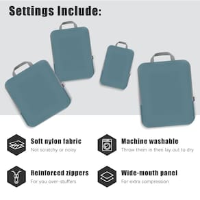 ??Maximize o espaço com compressão inovadora – Desvende o segredo para viagens compactas com nossos organizadores de compressão revolucionários. Com um zíper externo adicional, esses cubos são projetados para comprimir suas roupas de forma semelhante à eficiência de uma seladora a vácuo. Funciona assim: dobre e alise suas roupas, feche o zíper usando o zíper principal e, em seguida, comprima o cubo com o zíper extra, certificando-se de manter o tecido limpo para uma operação suave. - ??Maximize o espaço com compressão inovadora – Desvende o segredo para viagens compactas com nossos organizadores de compressão revolucionários. Com um zíper externo adicional, esses cubos são projetados para comprimir suas roupas de forma semelhante à eficiência de uma seladora a vácuo. Funciona assim: dobre e alise suas roupas, feche o zíper usando o zíper principal e, em seguida, comprima o cubo com o zíper extra, certificando-se de manter o tecido limpo para uma operação suave. - Tecido 360D de qualidade premium – Experimente o luxo do tecido 360D suave e macio que não apenas mantém suas roupas livres de rugas e manchas, mas também resiste aos rigores da viagem. Seu fator de alta durabilidade garante que ele possa lidar com o desgaste de suas aventuras, enquanto suas propriedades repelentes à água mantêm seus pertences protegidos contra derramamentos e vazamentos, garantindo que suas roupas permaneçam limpas e protegidas. - Mantenha-se organizado e leve – Feito de tecido 360D ultradurável, nossos organizadores prometem manter suas roupas bem organizadas sem adicionar peso desnecessário à sua bagagem. A estrutura cuidadosamente projetada, complementada por zíperes premium, suaves e de duas vias com cabos estendidos, facilita embalar e desembalar e deixar mais tempo para aproveitar suas viagens. - Solução de embalagem versátil – Se você estiver separando jaquetas de suéteres ou roupas íntimas de meias, nossos organizadores vêm em vários tamanhos para todas as suas necessidades de embalagem, garantindo fácil acesso e organização. Eles são o companheiro de viagem essencial para manter sua mala estruturada e encontrar exatamente o que você precisa quando precisar, sem o incômodo habitual. - Viaje de forma mais inteligente, não mais difícil – Abrace a conveniência de nossos cubos de compressão para utilizar totalmente o espaço limitado em sua mala, permitindo a acomodação de mais itens essenciais. Além de economizar espaço, esses cubos oferecem uma maneira organizada de categorizar seus itens, simplificando seu processo de embalagem e facilitando cada viagem.