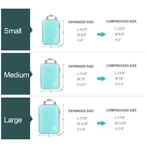 Cubos de embalagem de compressão para viagens - Cubos de embalagem de tecido premium 377D com zíperes suaves, bolsas de compressão que economizam espaço para viagens, organizadores de bagagem para - Maximize o espaço com cubos de embalagem de compressão: nossos organizadores de compressão inovadores para Travell vêm com um zíper externo extra que comprime suas roupas, semelhante a um selador a vácuo, permitindo que você economize até 66% de espaço em sua mala - Tecido 360D durável e leve: Feito de tecido 376D premium, estes organizadores para viagem são projetados para suportar o desgaste de viagens frequentes, mantendo suas roupas livres de rugas e manchas - Operação suave e fácil com zíperes premium: com zíperes suaves de alta qualidade, nossas bolsas de compressão para viagens garantem uma experiência de embalagem sem complicações, facilitando a abertura e o fechamento dos cubos de embalagem rapidamente - Solução de embalagem organizada: estes organizadores versáteis vêm em vários tamanhos para separar e categorizar suas roupas, como jaquetas, suéteres e meias, mantendo sua bagagem organizada e seus itens essenciais fáceis de encontrar - Viaje leve e inteligente: com nossos cubos de embalagem de compressão, você pode embalar com mais eficiência, otimizando o espaço limitado da mala enquanto mantém uma configuração de viagem leve e organizada, perfeita para viagens curtas e férias prolongadas