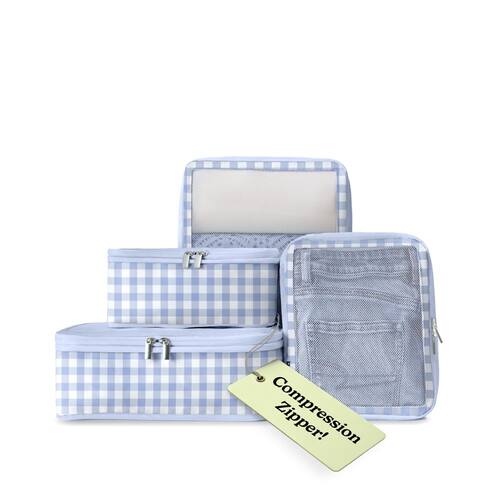 Viaje de forma inteligente com nossos organizadores de compressão que economizam espaço. Maximize o espaço da sua bagagem com os melhores cubos de compressão para mulheres e homens em viagens! Nossos cubos de compressão para viagem apresentam cubos de compressão com zíper duplo para sistema de viagem que reduz o volume em 50%, tornando-os ideais para qualquer necessidade de organizador de bagagem de mão. Algumas pessoas os chamam: cubos de bagagem para fazer malas, cubos de viagem para embalar mulheres, cubos de embalagem compressíveis para viagem, organizadores de bagagem para bagagem, cubos de viagem para compressão de embalagem, sacos de compressão bege superior, cubos de embalagem, filhotes de embalagem, cubos de bagagem de compressão de malha azul para mulheres, homens, crianças, acampamento. Estes organizadores de malha de compressão para viagens são feitos de tecido antibacteriano e resistente a odores infundido com íons de prata, garantindo que suas bolsas de roupas para viagens sempre tenham um cheiro fresco. Nossos cubos de compressão de viagem para embalar são adequados tanto para configurações de organizador de bagagem de mão quanto para malas despachadas. Estas opções de compressão de bolsas organizadoras de bagagem transformam a forma como você faz as malas, funcionando como organizadores eficientes de bolsas de viagem para bagagens de qualquer tamanho. Estes cubos de compressão para bagagem de viagem suportam o uso frequente. Cubos organizadores de bagagem resistentes apresentam zíperes, o que os torna os melhores cubos de embalagem para confiabilidade de compressão de viagem.