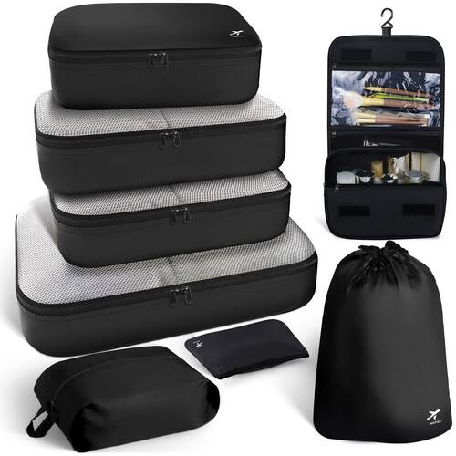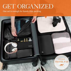 Você está cansado de colocar todos os seus itens essenciais na mala e achar que é difícil conseguir o que deseja? Não se preocupe, deixe um conjunto de organizadores de viagem ajudá-lo HOTOR organizar, organizar e encontrar suas coisas em um piscar de olhos. Diga adeus a todos os seus problemas de viagem! 1. Como um organizador de bagagem leve, os organizadores HOTOR para viagem permitem que você economize tempo valioso e espaço na mala quando estiver em movimento. Estas bolsas de embalagem servem na maioria das malas de tamanho padrão e mantêm todas as suas roupas e itens essenciais de viagem facilmente acessíveis. 2. Por serem versáteis e convenientes, estas bolsas de viagem ajudam você a se manter organizado em qualquer ambiente. Você pode levar esses organizadores para viajar em viagens de negócios, aventuras de acampamento e férias, para manter suas roupas, sapatos e outros acessórios separados, ou também usá-los em casa como organizadores de armazenamento para seus armários para manter seu armário elegante. - Organize bem HOTOR sua bagagem: com organizadores de viagem de 8 peças, embalar não é mais uma tarefa para viajar. Apenas um conjunto é suficiente para organizar todos os seus itens essenciais de viagem, como roupas, sapatos, roupas íntimas e muito mais, tornando sua bagagem limpa e em forma. Eles não são apenas essenciais para navios de cruzeiro, mas também ideais para todas as ocasiões, como férias em família, viagens de negócios, férias, caminhadas, acampamento, viagens de trailer, etc. - Versátil e flexível: os cubos de viagem HOTOR para embalar apresentam 6 tamanhos e estilos diferentes de organizadores para diferentes itens: 3 bolsas de malha, 1 bolsa de sapato, 1 bolso com cordão e 1 bolsa de roupa íntima. Além disso, estes organizadores podem ser utilizados para se manter organizados em casa, durante a viagem, e são perfeitos para acampar ou qualquer aventura ao ar livre! Você pode colocá-los facilmente em suas malas, bolsas, mochilas, bolsa esportiva etc. - LEVE E ECONOMIA DE ESPAÇO: Com a ajuda de bolsas de viagem HOTOR você pode maximizar o espaço na bagagem, criando espaço para outras coisas. Além disso, as bolsas organizadoras de viagem para bagagem são fáceis de armazenar e transportar. Elas são dobráveis e podem ser dobradas quando não estiverem em uso. O conjunto de 6 peças pesa menos de 500 g e não adiciona peso extra à sua bagagem. - Nunca se esqueça do essencial: antes de usar estes organizadores para malas de mão, você esqueceu frequentemente um ou dois dos seus itens essenciais com você ao sair? Agora é hora de dizer adeus ao descuido! Deixe que os organizadores HOTOR ajudem você a organizar todos os itens essenciais de viagem e contê-los em ordem! - Qualidade premium: com tecido de alta densidade e resistente à água, estas bolsas organizadoras de viagem para bagagem podem proteger suas roupas de rugas, manchas e umidade. Além disso, tenha certeza de que os zíperes de metal são feitos para durar com o uso frequente. Os zíperes bidirecionais alargados de 5 mm deslizam suavemente sem travar e travar.
