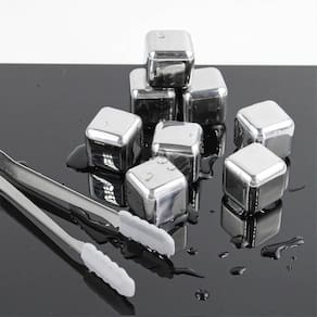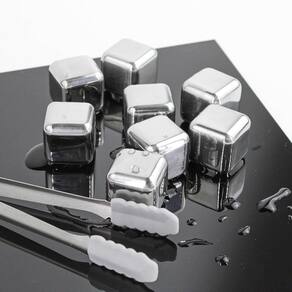 Os Cubos de Gelo em Aço Inox são perfeitos para manter sua bebida preferida gelada sem que fique diluída ou aguada, além de não alterar seu sabor. É feito de aço inoxidável de grau alimentício, podendo ser utilizado com vinhos, cerveja, suco, vodka e outras bebidas. Acompanha pegador com ponta de silicone.