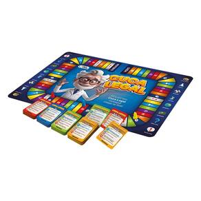 Contém 1 tabuleiro, 6 peões coloridos, 1 dado e 112 cartas (mais de 600 perguntas em níveis Novato, Sabichão e Fera), para 2-6 jogadores em embalagem compacta de 44x32x6 cm.