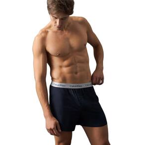 Cueca Calvin Klein modelo Samba-Canção fabricada em tecido Modal com elástico plano aparente personalizado de 35 milímetros. Modelo com vista frontal falsa (fechada). Parte posterior com costura única centralizada.
