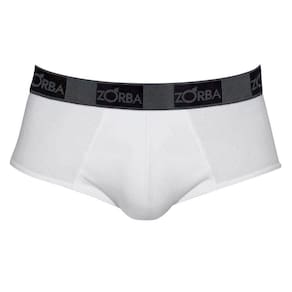 Cueca Zorba modelo Slip Confort fabricada com lateral ligeiramente mais larga em tecido de malha de algodão com elastano e com elástico aparente personalizado. Modelo com bojo forrado e com ajuste perfeito ao corpo, proporcionando grande conforto.