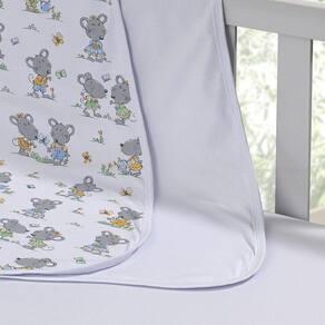 Cueiro Duplo Tecebem Baby Malha 100% Algodão Estampado Tom 80cm X 90cm Branco O cueiro Duplo confeccionado em 100% algodão com fofo tema infantil e acabamento com Vies. Ideal para apoiar o bebê no pós banho, protegê-los de cobertores sintéticos e auxiliar no carrinho durante o passeio, o cueiro é item indispensável no enxoval. Práticos para acompanhar o bebê durante os primeiros meses. Estampa Tom A estampa Tom Cria uma atmosfera doce e acolhedora para o quarto do bebe. Ratinhos Simpáticos e pequenas Borboletas alegram ainda mais este desenho.