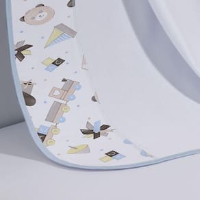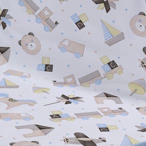 A cor azul remete a confiança e segurança que todo bebe precisa. Inspirada em brinquedos de madeira, esta estampa e um verdadeiro sonho de infância.
