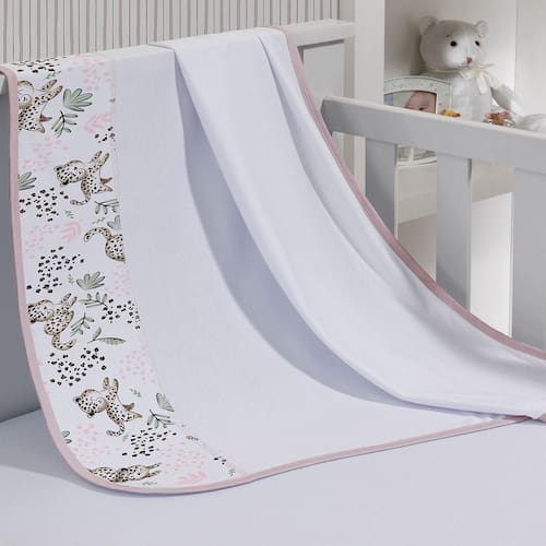 Cueiro Simples Tecebem Baby Malha 100% Algodão Estampa Lizi 80cm X 90cm Branco O cueiro Simples confeccionado em Malha 100% algodão com fofo tema infantil e acabamento com Vies. Ideal para apoiar o bebê no pós banho, protegê-los de cobertores sintéticos e auxiliar no carrinho durante o passeio, o cueiro é item indispensável no enxoval. Práticos para acompanhar o bebê durante os primeiros meses. Estampa Lizi Delicadeza em cada detalhes nesta estampa. A combinação do rosa claro com os bebes onças, Trazem ao quarto do bebe uma atmosfera cheia de Amor e Doçura.