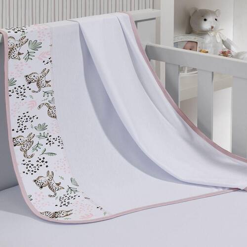 Cueiro Simples Tecebem Baby Malha 100% Algodão Estampa Lizi 80cm X 90cm Branco O cueiro Simples confeccionado em Malha 100% algodão com fofo tema infantil e acabamento com Vies. Ideal para apoiar o bebê no pós banho, protegê-los de cobertores sintéticos e auxiliar no carrinho durante o passeio, o cueiro é item indispensável no enxoval. Práticos para acompanhar o bebê durante os primeiros meses. Estampa Lizi Delicadeza em cada detalhes nesta estampa. A combinação do rosa claro com os bebes onças, Trazem ao quarto do bebe uma atmosfera cheia de Amor e Doçura.