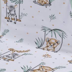 Cueiro Simples Tecebem Baby Malha 100% Algodão Estampa Mara 80cm X 90cm Branco O cueiro Simples confeccionado em Malha 100% algodão com fofo tema infantil e acabamento com Vies. Ideal para apoiar o bebê no pós banho, protegê-los de cobertores sintéticos e auxiliar no carrinho durante o passeio, o cueiro é item indispensável no enxoval. Práticos para acompanhar o bebê durante os primeiros meses. Estampa Mara Uma safari Magico, divertido e delicado, trazendo alegria e conforto para acompanhar os mais doces sonhos do Bebe.