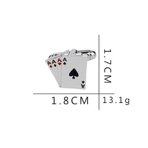 Material: Liga Tamanho: 1,8 cm × 1,7 cm Peso: 13,1 g Design do Poker Aces: essas abotoaduras apresentam um design criativo inspirado nas cartas de baralho, com foco nos icônicos Ás de Espadas e Ás de Diamantes, adicionando um toque divertido à sua roupa. Artesanato de alta qualidade: feitas de liga durável com um acabamento elegante e polido, essas abotoaduras são projetadas para serem elegantes e duradouras. Perfeitas para entusiastas do pôquer: se você gosta de jogos de pôquer ou adora acessórios com temas de cartas, essas abotoaduras são uma ótima maneira de mostrar sua paixão de uma forma moderna. Versátil para várias ocasiões: adequadas para reuniões de negócios, encontros casuais ou eventos especiais, essas abotoaduras dão um toque único a qualquer camisa ou terno. Ideal para homens elegantes: um ótimo acessório para homens que gostam de designs criativos e distintos, tornando-os perfeitos para quem quer se destacar com um toque divertido e sofisticado.